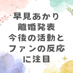 早見あかりさんの離婚は、彼女にとって大きな人生の変化である一方で、彼女の前向きな姿勢と強さが強調される出来事でもあります。これからもファンとともに、新たな挑戦に向かって進む彼女の姿を見守りたいところです。